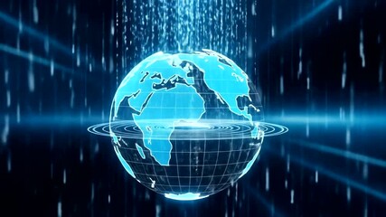 Digital Globe With Streaming Data On World Map Background Videos