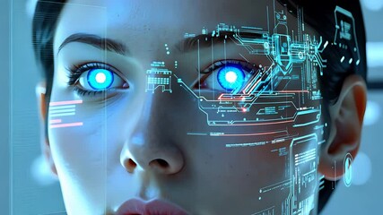Digital Glowing Neon Ai Interface With Data Overlay Concept Videos