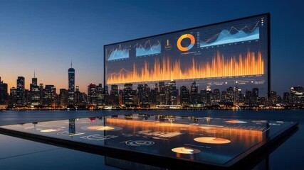 Digital Graphs And Data Visualization Over Cityscape Videos