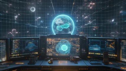 Digital Grid Interface From Futuristic Spacecraft Cockpit Videos