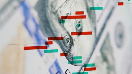 Digital Growth Graph On Screen With Falling Banknotes Background Videos