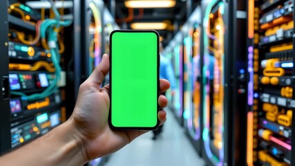 Digital Hand Across Server Room Symbolizing Data Processing Videos