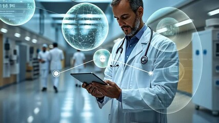 Digital Healthcare Doctor Using Tablet With Global Data Interface Videos
