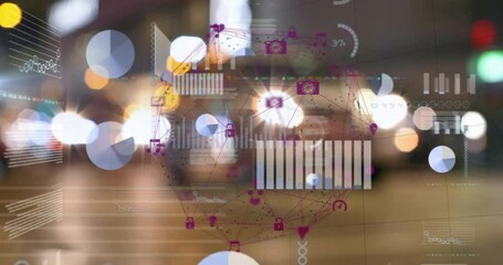 Digital Heart Icon Overlaying Data Analytics Visualization Videos