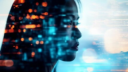 Digital Human Silhouette With Binary Code Overlay Videos