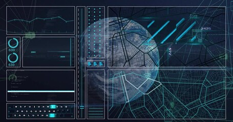 Digital Icons Network Over Globe With Data Visualization Videos