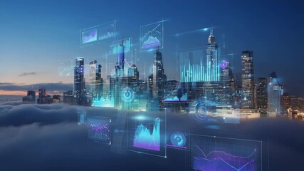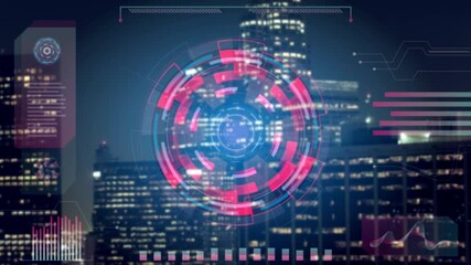 Digital Infographic Interface On Skyscraper City Skyline Videos