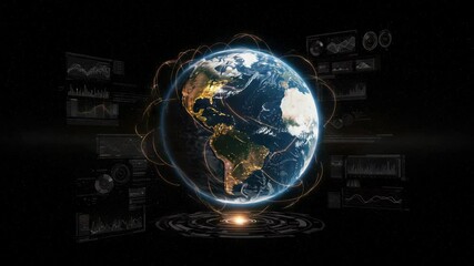 Digital Infographic Interface Surrounding Globe In Space Videos