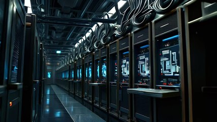 Digital Interface And Data Processing In Advanced Server Room Videos