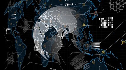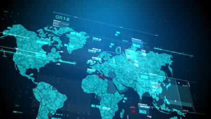 Digital Interface And Data Processing On World Map Videos