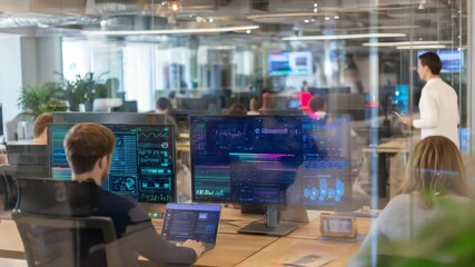 Digital Interface And Data Processing Visualization In Office Videos