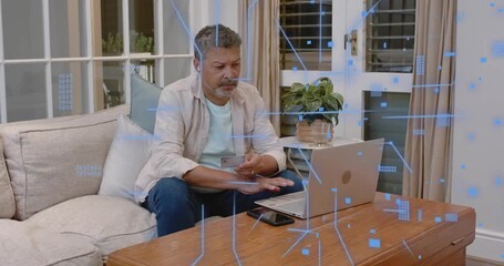 Digital Interface Animation Overlaying Man Typing On Keyboard Videos