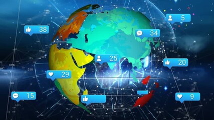 Digital Interface Animation With Media Icons And Data Processing Graphics Videos