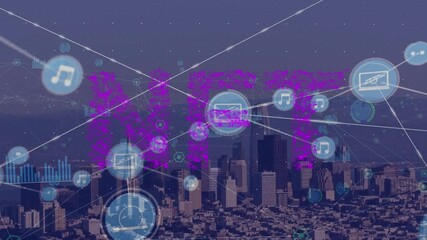Digital Interface Animation With Network And Cityscape Videos
