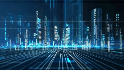 Digital Interface Data Overlay On Modern Cityscape Videos