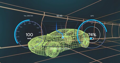 Digital Interface Featuring Electric Car With Speedometer Display Videos