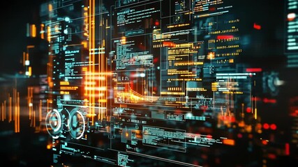Digital Interface Illustrating Data Processing On Large Screens Videos