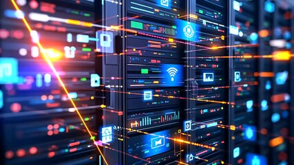 Digital Interface In Modern Server Room With Data Visualization Videos
