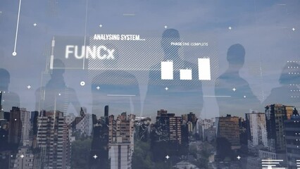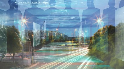 Digital Interface Of Data Processing Over City Silhouette Videos