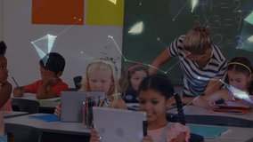 Digital Interface Over Classroom With Diverse Students And Teacher Videos