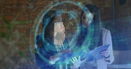 Digital Interface Overlay On Business Discussion In Modern Office Videos