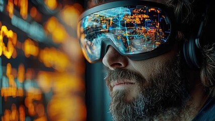 Digital Interface Overlay On Cityscape With Futuristic Data Visualization Videos