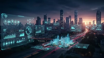 Digital Interface Overlay On Urban Cityscape Videos