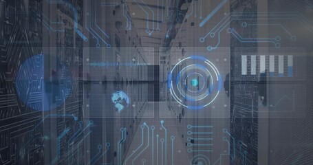 Digital Interface Overlay With Modern Servers In Data Center Videos