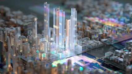 Digital Interface Skyline With Futuristic Elements Concept Videos