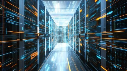 Digital Interface With Abstract Data Processing In Modern Server Room Videos