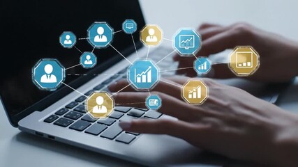 Digital Interface With Data Analytics And Media Icons Overlay Videos