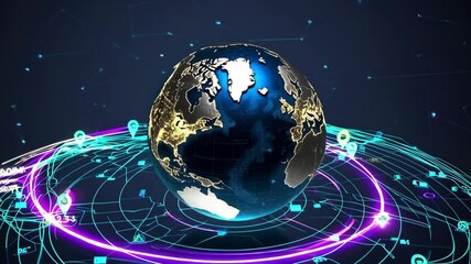 Digital Interface With Data And Rotating Globe Animation Videos