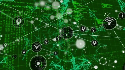 Digital Interface With Data Processing On Green Background Videos