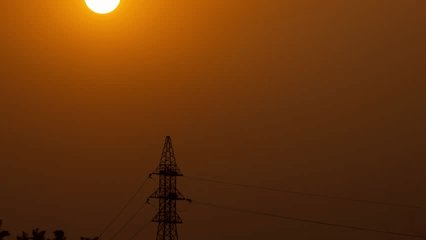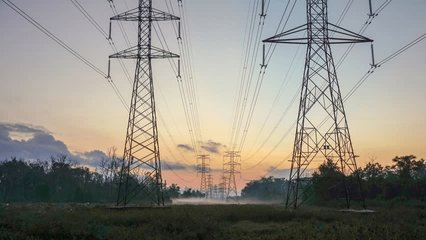 Digital Interface With Data Processing Over Electrical Pylons At Sunset Videos
