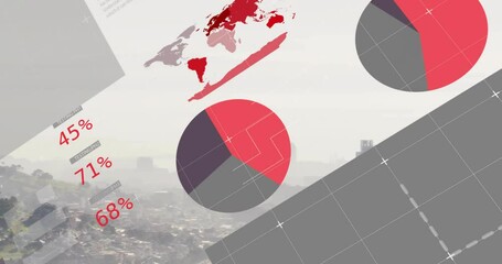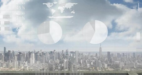 Digital Interface With Financial Graphs Over Cityscape Videos