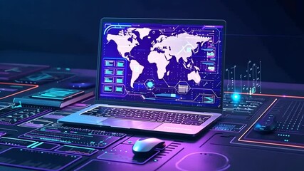 Digital Interface With Futuristic World Map Design Videos