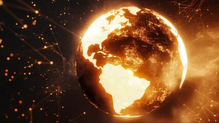 Digital Interface With Rotating Globe And Data Streams In Red Videos