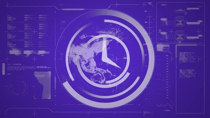 Digital Interface With World Map And Rotating Clock Graphic Videos