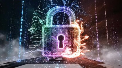 Digital Lock With Binary Code And Circuits On Screen Videos