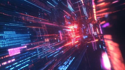 Digital Matrix With Neon Light Trails And Binary Code Videos