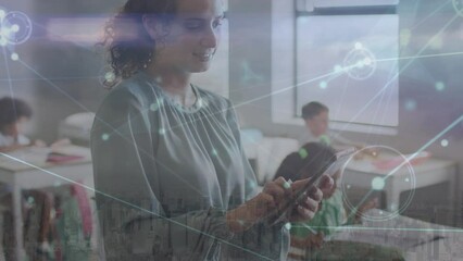 Digital Network Animation Over Girl Using Tablet Videos