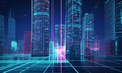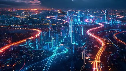 Digital Network Connecting Futuristic Urban Cityscape Videos