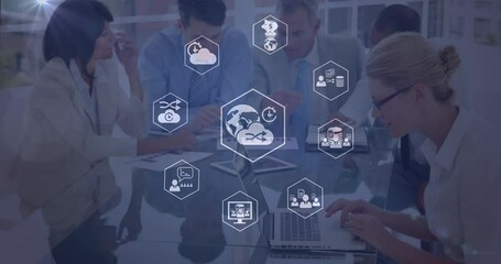 Digital Network Connecting Icons Over Interface Videos