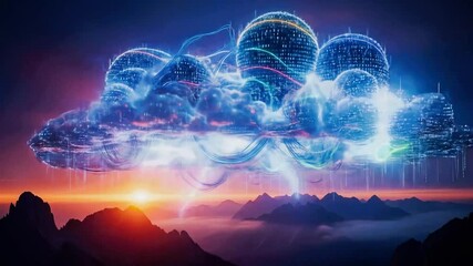 Digital Network Connections Against Sunset Clouds Videos