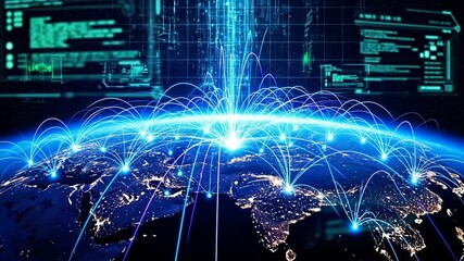Digital Network Connections Over Global Data Stream Videos
