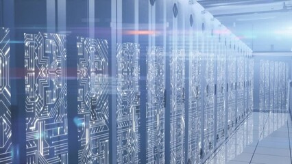 Digital Network Connections Over Server Room Background Videos