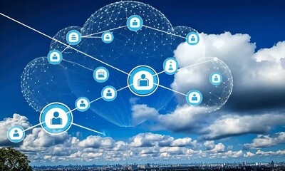 Digital Network Connections With Cloud Interface In Blue Sky Videos