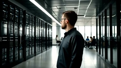 Digital Network Connectivity Inside Modern Server Room Videos