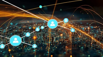 Digital Network Connectivity Over Modern Cityscape Videos