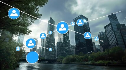 Digital Network Icons Connected Over Cloudscape Videos
